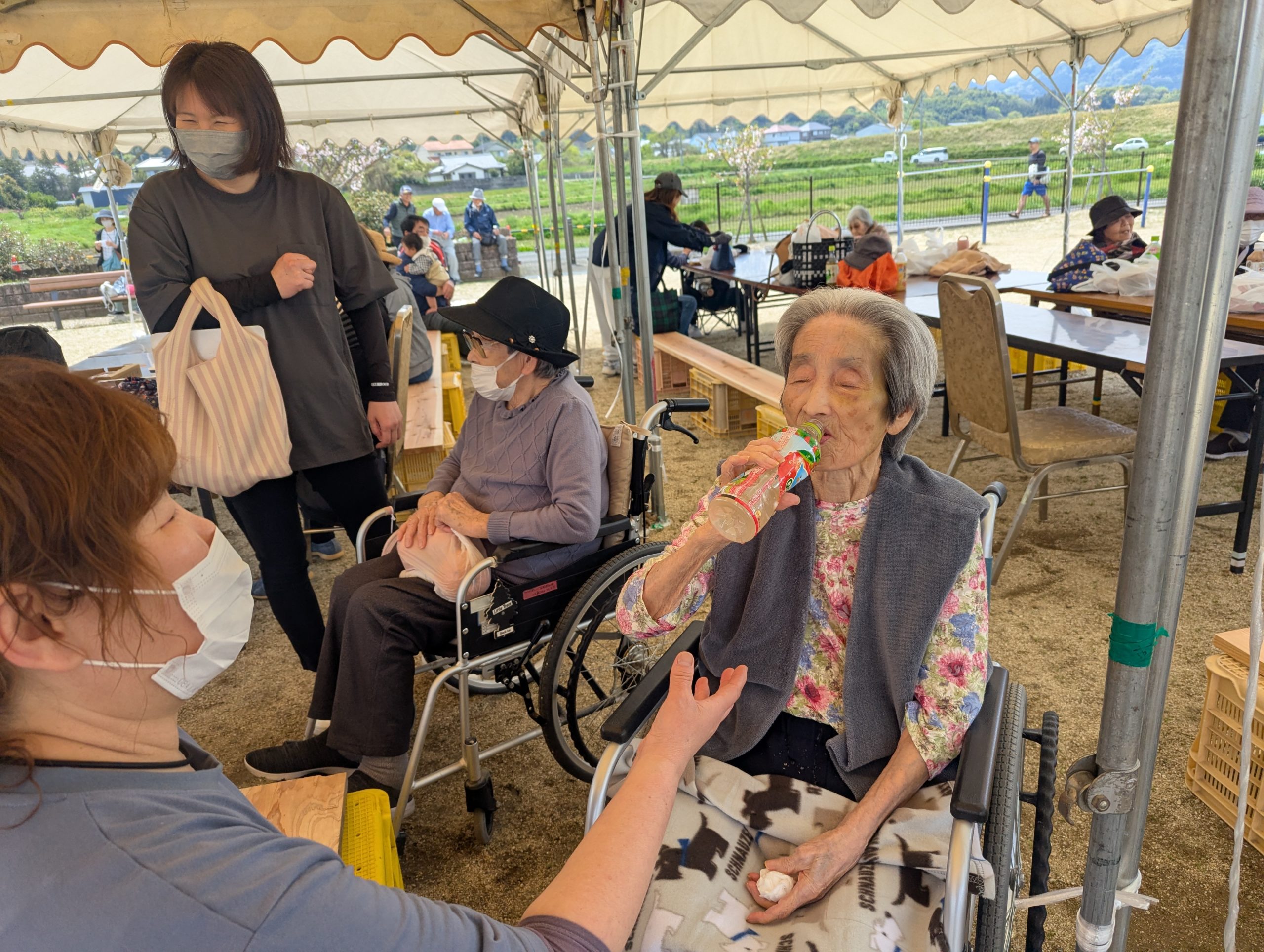 4月12日(日)津吉町にあるさくら公園で、初めてのイベント「さくら公園ふれあいフェスタ」に入居者の皆様と行ってきました!!